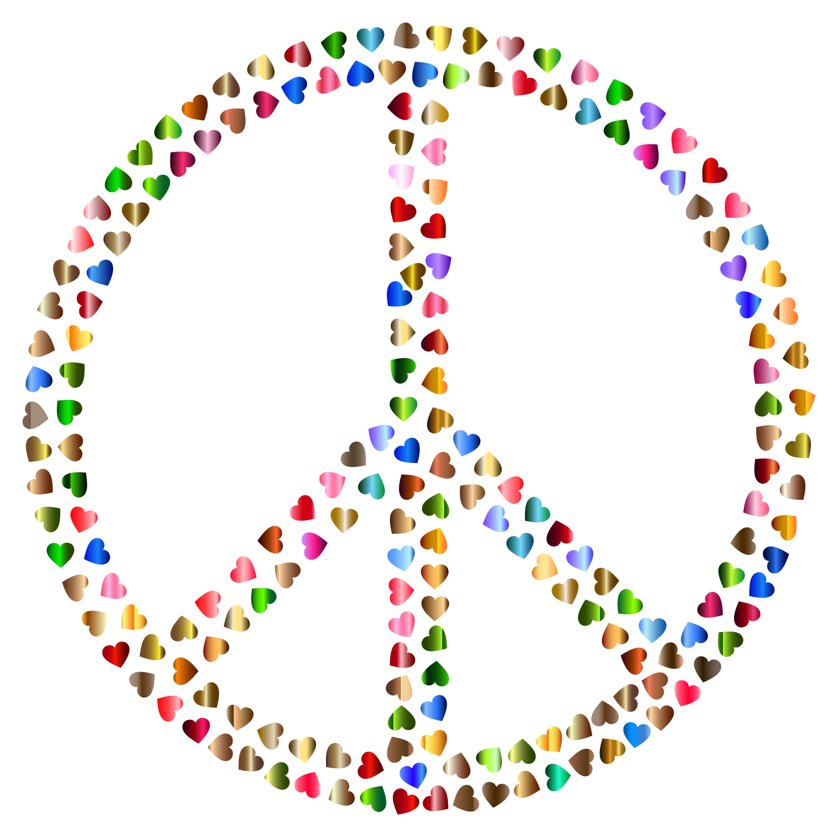 This features a large, colorful circle made up of various colored hearts. These hearts are arranged in such a way that they form the shape of a peace sign. The hearts come in different shades and sizes, creating an eye-catching and vibrant display. The combination of these hearts creates a visually appealing and symbolic representation of peace.