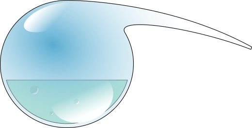 This features a round, clear glass object with a long downward-pointing neck. Inside the glass, there is some liquid that appears to be blue in color. This unique design gives the impression of an upside-down water droplet or a bubble floating on top of the surface. The overall appearance of the image suggests a creative and artistic representation of this unconventional object.