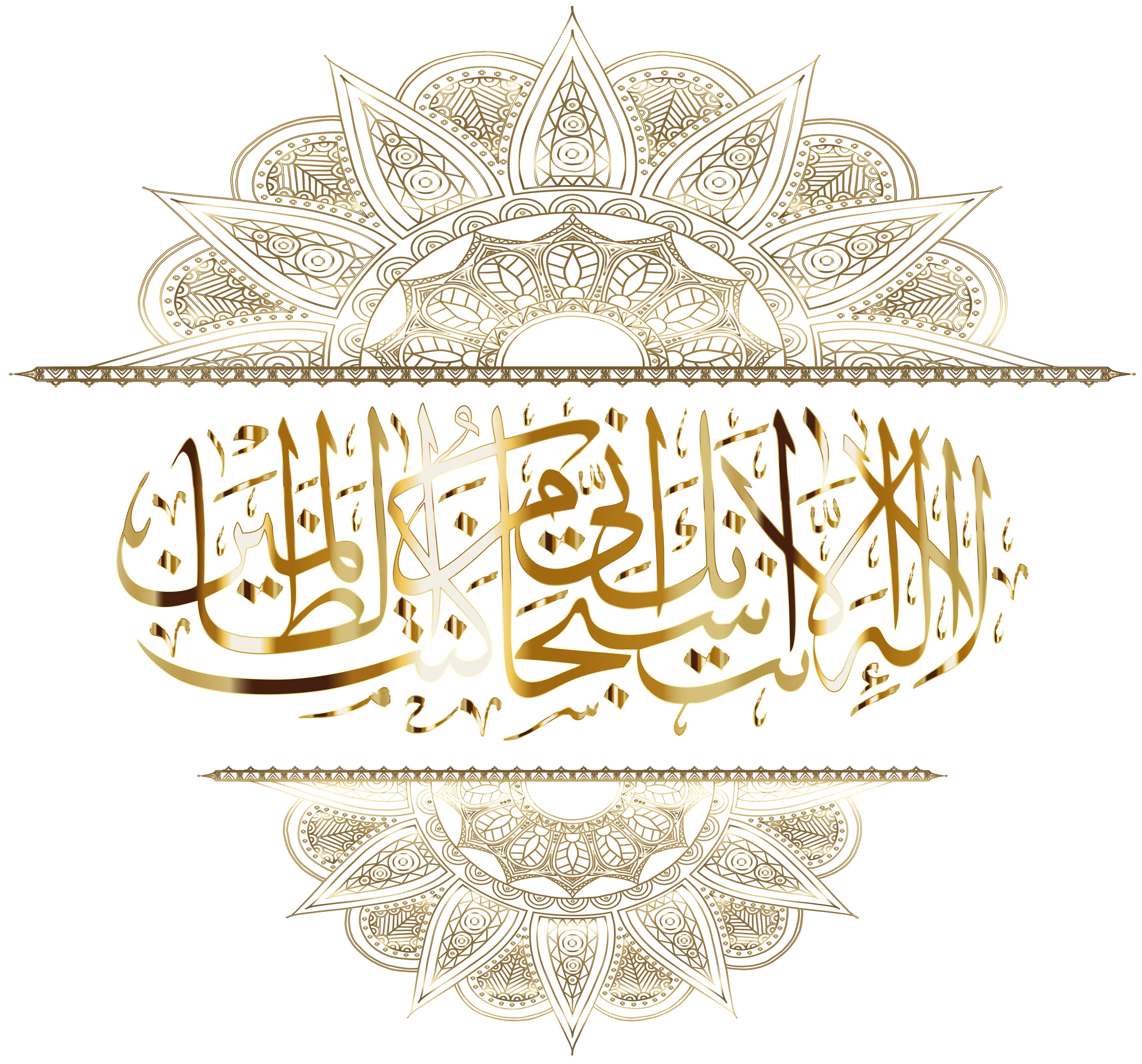 This features a beautifully designed ornament with intricate patterns and golden letters. The letters are written in Arabic, which is the language used for Islamic scriptures. Behind these letters, there's an ornate flower design that adds to the overall visual appeal of the artwork. The petals of this flower have sharp edges, giving it a unique and elegant appearance. This artistic piece could be used as a decorative item or even as a religious symbol in Islamic culture.