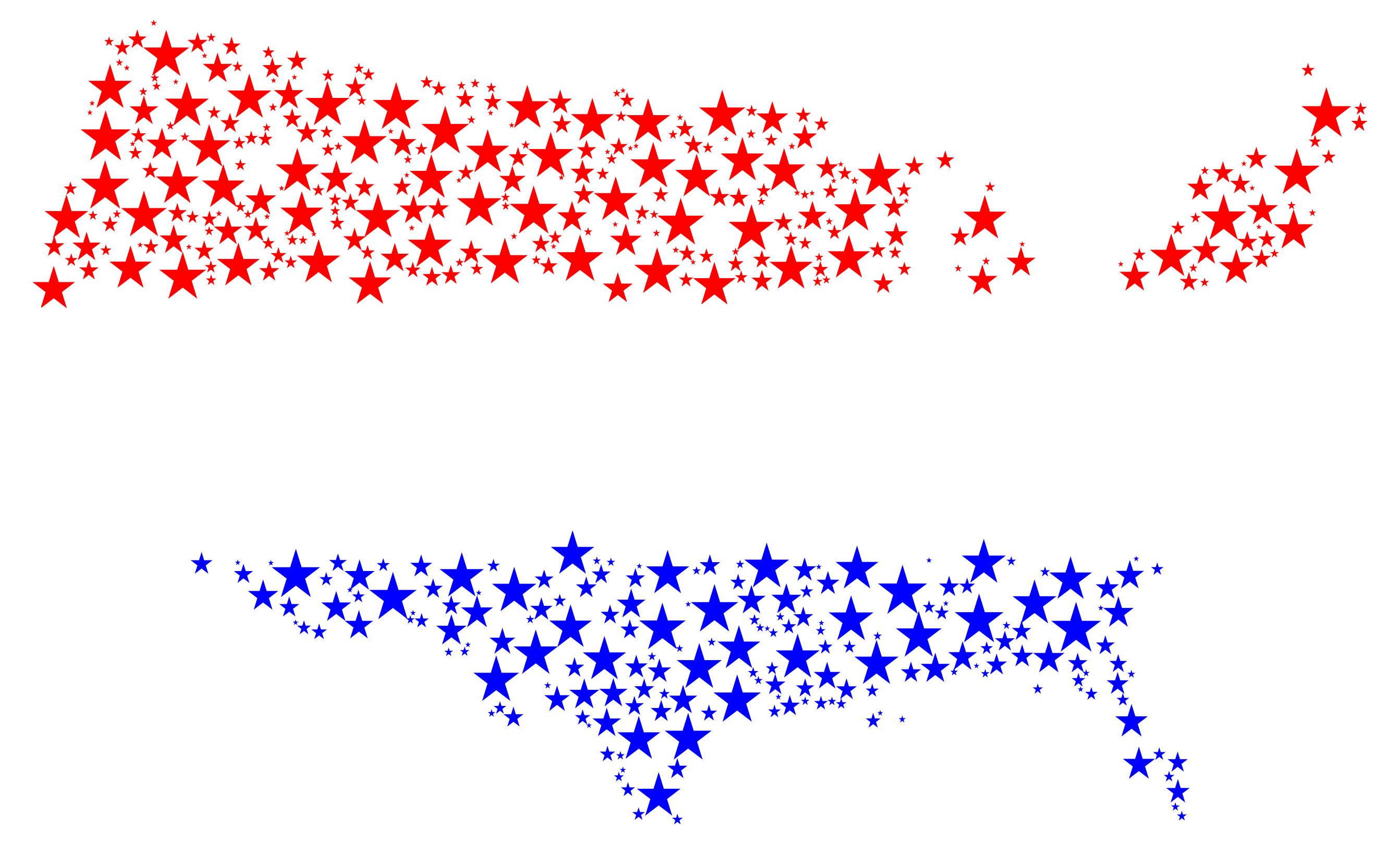 This features a creative representation of the United States, made up of various stars. These stars are scattered across the country in different colors, including red, white, and blue. The arrangement of the stars creates an interesting visual effect that resembles a map of the USA. This unique artistic display showcases the country's iconic flag while also providing a distinctive perspective on its geography.