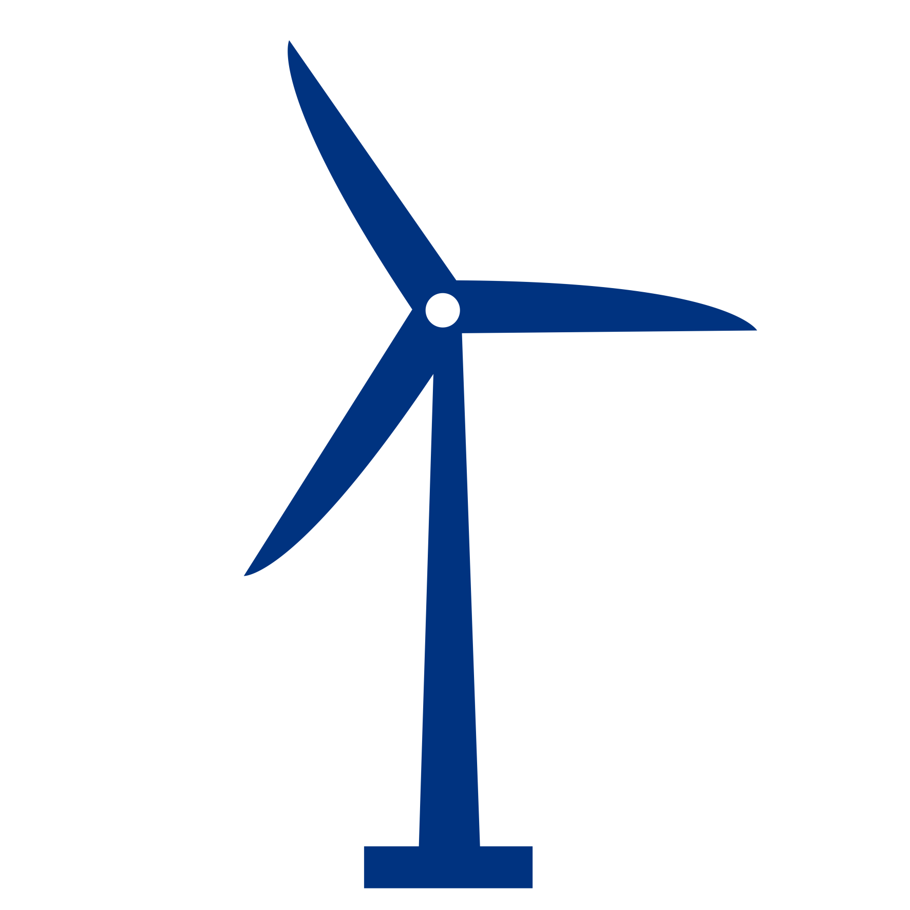 This features a blue windmill with a white background. It is an illustration of a thin, blue windmill that stands out against the white backdrop. The windmill has a large blade and appears to be a prominent symbol in the scene. This simple yet striking design makes it an interesting focal point for any setting or project where it is used.