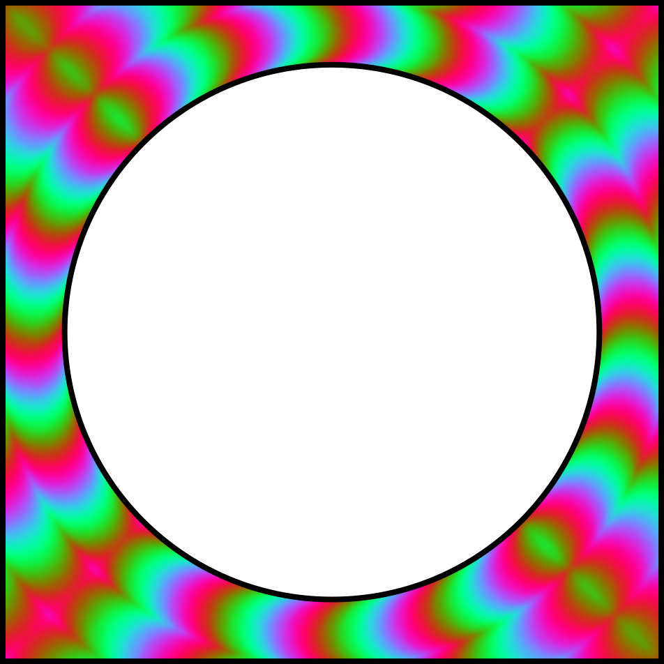 This features a circle with a white background, which is surrounded by a vibrant and colorful pattern. This pattern consists of various shades of pink, blue, green, yellow, and orange, creating an eye-catching and lively atmosphere. The circle itself appears to be the central focus of the image, while the surrounding colors create a sense of depth and movement within the composition.
