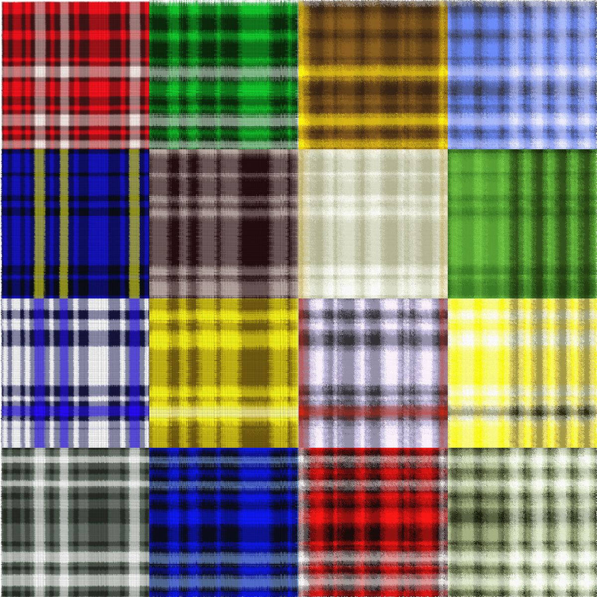 This is a collage of various plaid patterns, each with different colors and designs. There are six distinct plaid patterns in total, arranged in a square formation. Each pattern has its own unique color scheme, making the collage visually appealing and diverse. The patterns vary from blue to yellow, red, green, brown, and white, creating an interesting mix of hues and textures. Overall, the image showcases a creative and eye-catching display of plaid designs.
