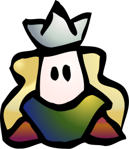 This features a colorful cartoon character with a crown on its head. This character appears to be wearing a blue and yellow outfit, giving it an interesting and vibrant appearance. The character's face is partially obscured by the crown, adding a sense of mystery to the design. Overall, this unique and eye-catching cartoon character stands out as a creative and engaging visual element.