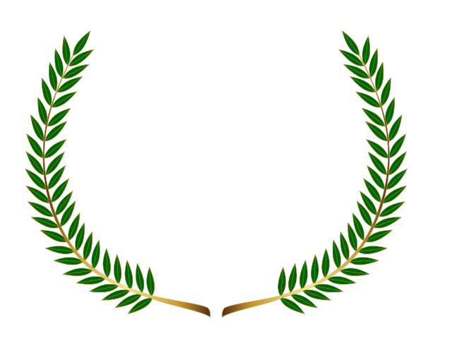 This features a decorative laurel wreath, which is an ornamental design made from intertwined leaves. This particular wreath has two distinct sections, with one section being larger than the other. The wreath appears to be made of gold and green leaves, giving it a sophisticated and elegant appearance. The overall composition of the image showcases the intricate details of the laurel wreath, making it an appealing visual element.