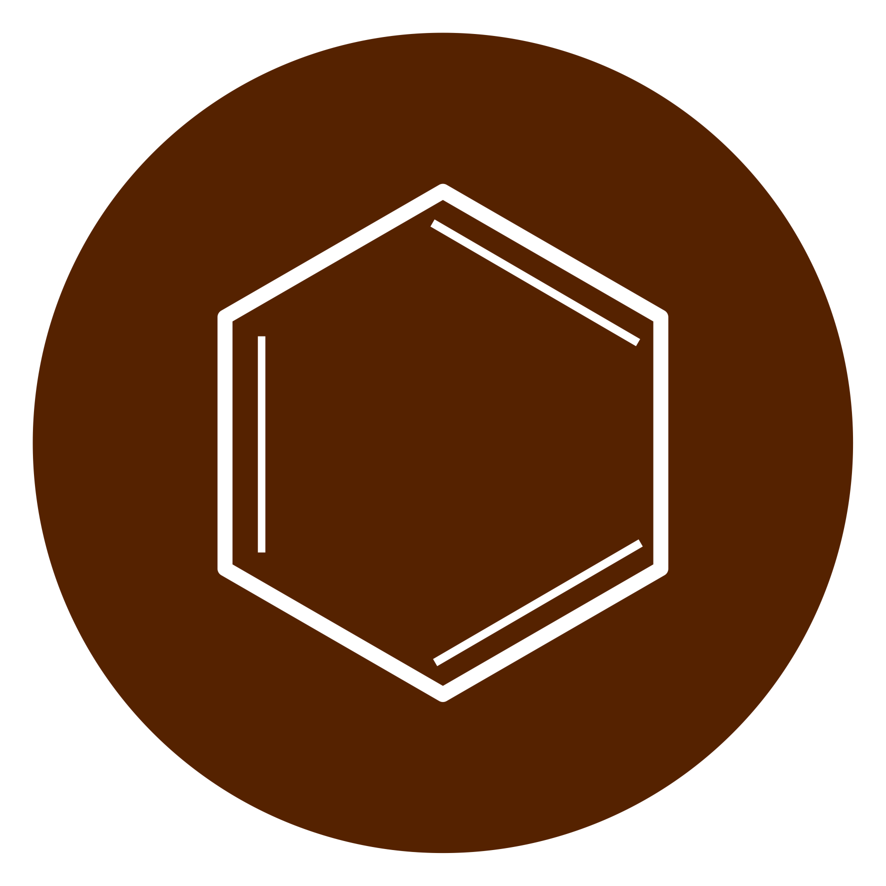 This features a brown circle with a chemical symbol inside of it. This symbol is the letter "S" written in a stylized manner, giving it an artistic appearance. The circle itself has a slightly darker shade than the surrounding area, creating a contrast between the two colors.