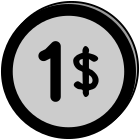 This features a one dollar coin with the number 1 on it. This coin is likely used for transactions and purchases, as it represents a single unit of currency. The coin's design includes the number 1 in black, which stands out against the white background. The overall appearance of the coin suggests that it is made from metal, possibly copper or silver, and has been minted to be used in various financial transactions.