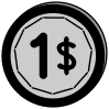 This features a black and white coin with the number one written on it. This coin is likely used for currency, as it has a dollar sign on it. The outer border of the coin is round, while the inner border is eleven-sided, giving it a unique appearance. The design of this coin suggests that it may be used in various settings or situations where one dollar is needed.