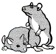 This features a black and white drawing of two mice. One mouse is standing on top of the other, with its back legs resting on the smaller mouse's body. They appear to be in an intimate position, as if they are mating or playing together. The larger mouse occupies most of the space in the image, while the smaller mouse is situated towards the bottom right corner. The drawing showcases a close-up view of these two mice, highlighting their unique features and interactions with each other.