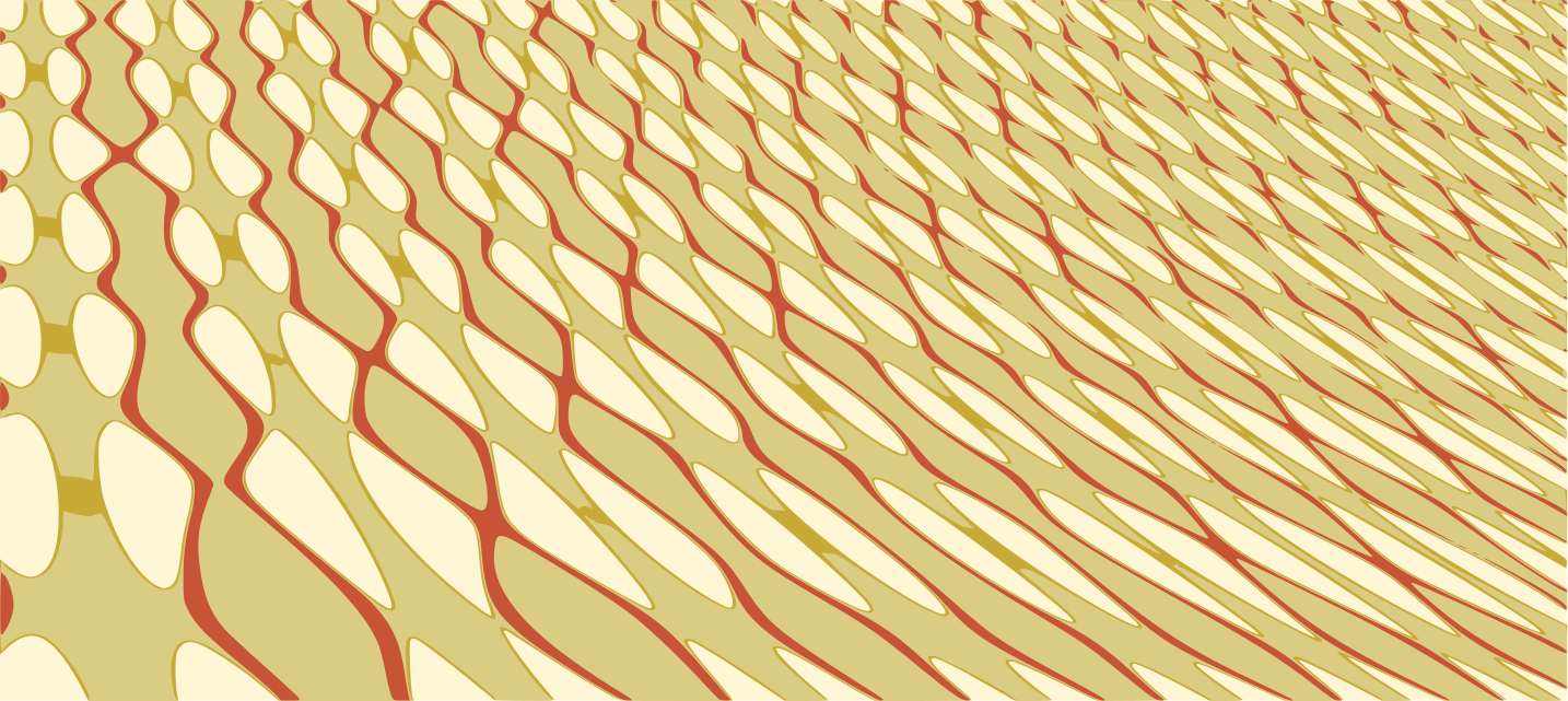 This features a large, abstract design with curved shapes and red outlines. These shapes are arranged in a linear pattern that covers the entire background of the image. The overall composition creates an interesting visual effect, as the shapes seem to flow together seamlessly while maintaining their distinct individuality. This artistic piece could be used for various purposes such as wall decoration or even as part of a larger design project.
