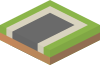 This features a square-shaped piece of land with green grass and brown soil. In the center, there is a black road that cuts through the area. This illustration could be used to represent a map or a geographical feature in a game or other visual context.