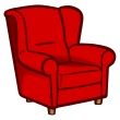 This features a red armchair with a wooden frame, placed on a white background. The chair is designed to be comfortable and inviting, as it has been drawn in a cartoon style. It appears to be an illustration of a cozy seating area, perfect for relaxing or reading a book. The red color of the armchair adds warmth and vibrancy to the scene, making it visually appealing and inviting.