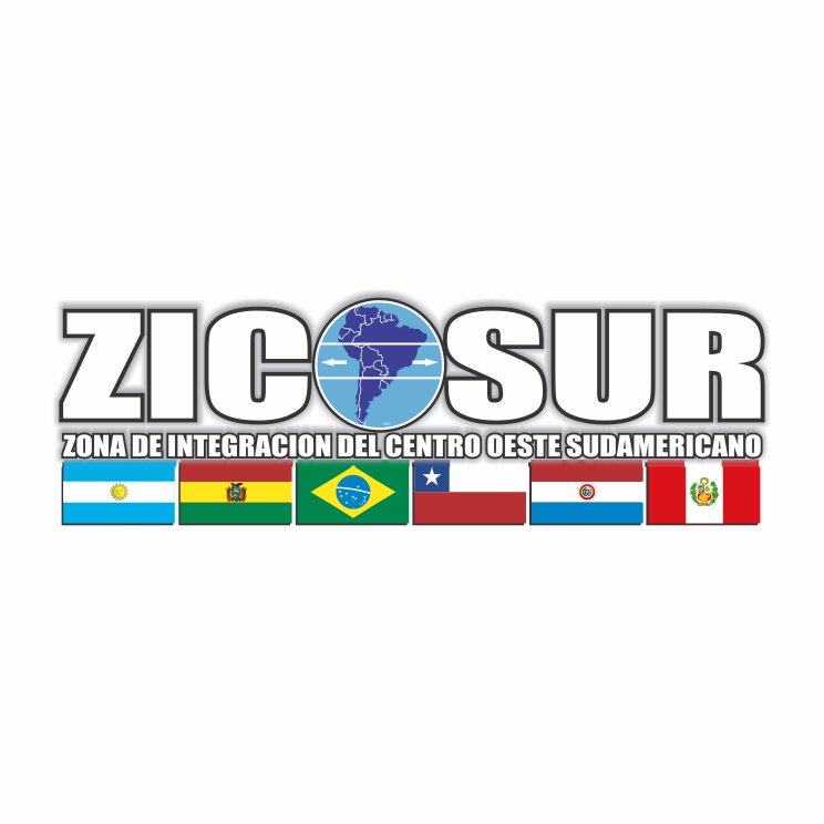 This features a white background with a logo that reads "ZICOSUR." Below the logo, there are several flags representing different countries. These flags include Brazil, Argentina, Mexico, Peru, and Venezuela. Each flag is placed in a row below the ZICOSUR logo, creating an appealing visual display of international representation. The combination of the logo and flags creates a sense of unity among these nations.