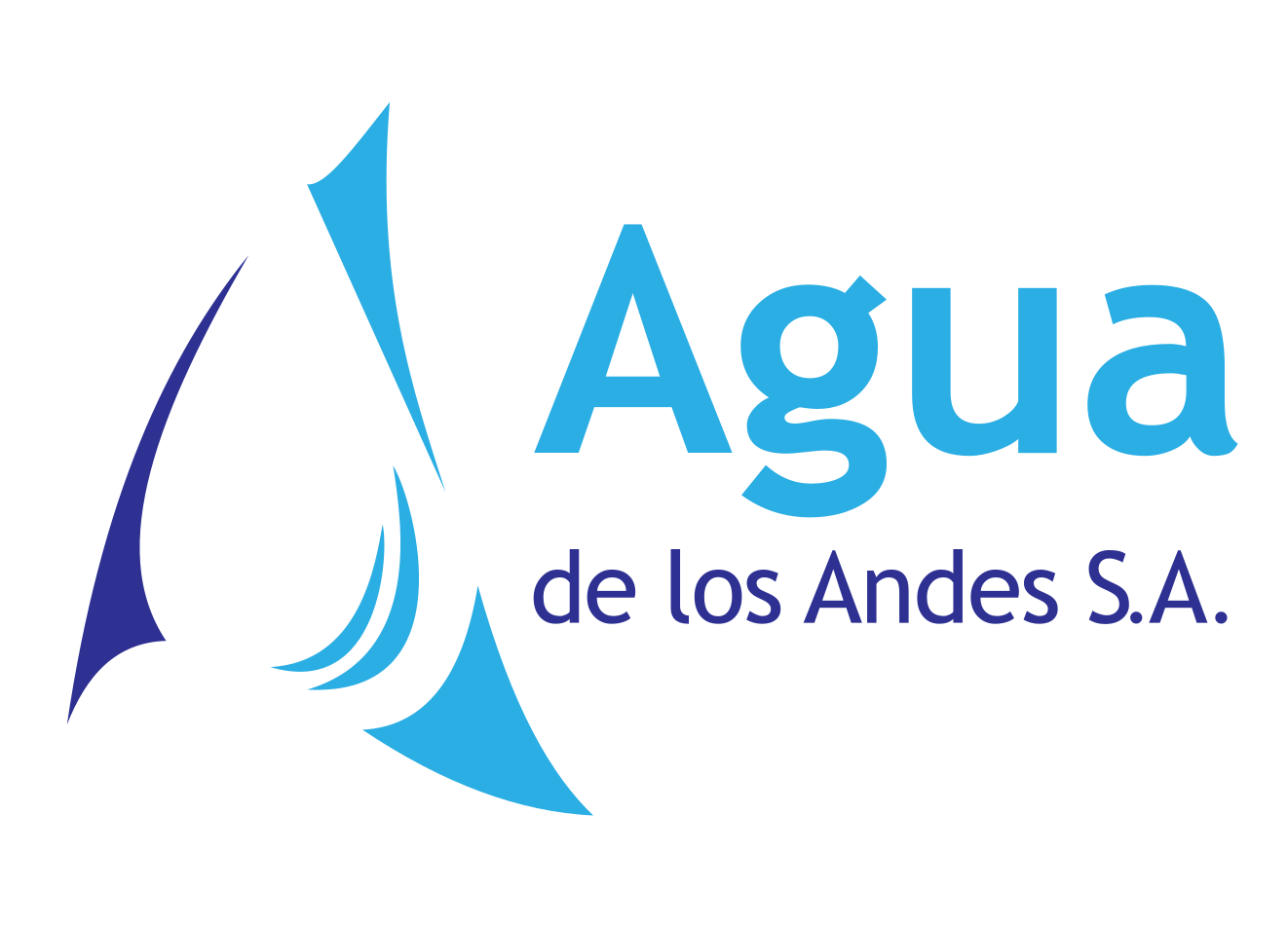 This features a blue and white logo for Agua de los Andes S.A. This company is likely involved in the water industry, as indicated by their name which translates to "water of the highlands." The logo consists of an abstract design with a blue background and a white boat shape, giving it a modern and professional appearance.
