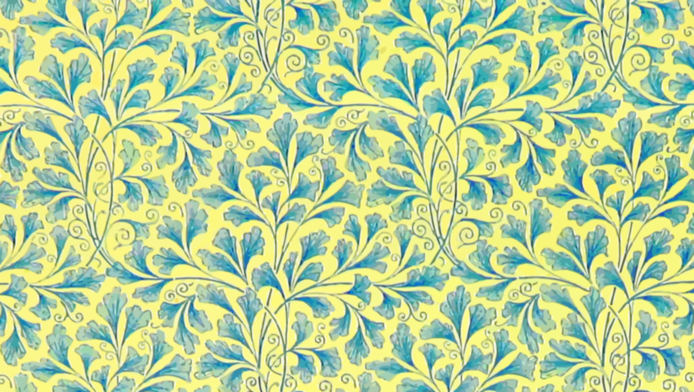 This features a yellow and blue floral patterned wallpaper with a leafy design. The wallpaper is adorned with a variety of leaves in different shades, including blue, green, and yellow. These leaves are scattered throughout the scene, creating an eye-catching and vibrant pattern on the wall. The combination of these colors and the intricate leaf designs make this wallpaper a unique and visually appealing choice for any space.