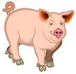 This features a cartoon pig with a curly tail, standing on all fours and looking straight ahead. It is a large pink pig that appears to be the main focus of the scene. The pig's body occupies most of the frame, giving it a prominent presence in the image.