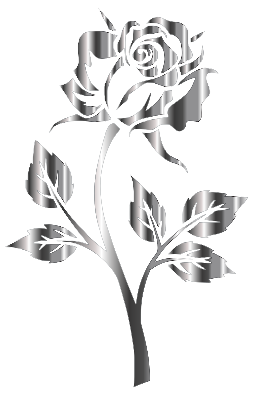 This features a beautifully designed rose with a long stem and five leaves attached to it. The rose is prismatic in color, giving it an eye-catching appearance. It appears to be a stylized or silhouette of the flower, which adds depth and dimension to its design. The rose's unique shape and intricate details make it stand out as a captivating piece of artwork.