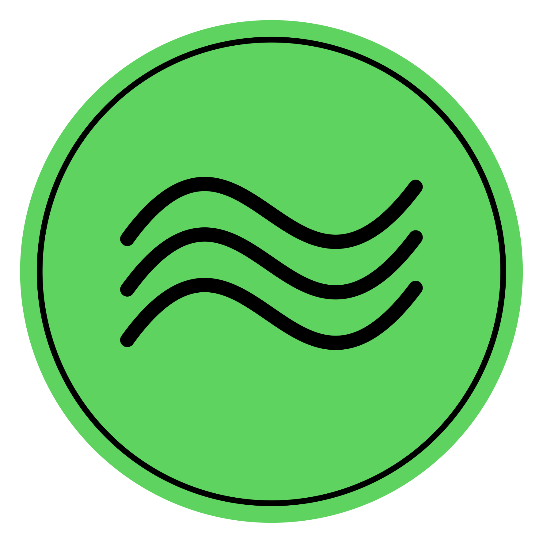 This features a green circle with a white outline, which is filled with a black and brown wave-like pattern. This design resembles a barcode or a symbol commonly associated with chemistry and science. The color scheme of the circle consists of a combination of green and white, creating an eye-catching contrast against any background.