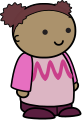 This features a cartoon character, specifically a little girl with brown hair and a pink shirt. She is wearing red polka dots on her shirt and has a smile on her face. The girl appears to be standing in front of a wall or a background that is not visible in the frame. Her outfit gives off a cheerful and playful vibe, making her an appealing character for children's entertainment.