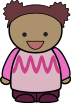 This features a cartoon character, specifically a brown teddy bear with big eyes and a smile on its face. It is wearing a pink sweater with a design of hearts on it. The teddy bear appears to be standing in front of a white background, giving the impression that it's posing for a picture. Its outfit consists of a pair of red shoes, which adds a pop of color to its overall appearance.