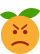 This features a cartoon orange with an angry face drawn on it. The orange has a green stem and leaf, giving it the appearance of a smiley face. The angry expression is conveyed through the eyes and mouth of the orange. This creative representation of an orange can be seen as a playful way to express emotions or simply as a fun image for viewers.