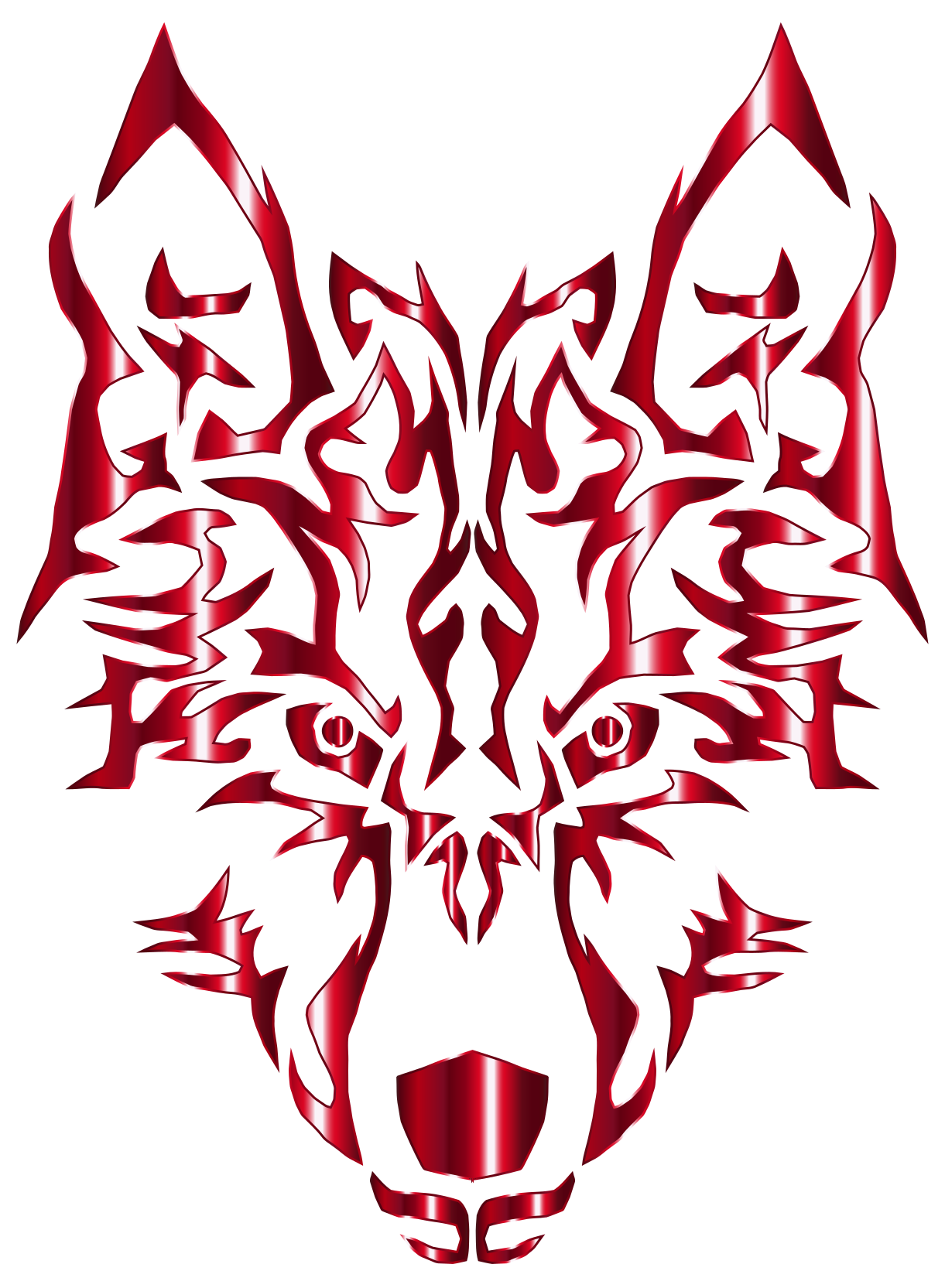 This features a red and white wolf's head with its mouth open, giving the appearance of a snarling or growling expression. The wolf's face is adorned with intricate patterns that add to its striking visual appeal. The wolf's eyes are also depicted in the design, further emphasizing its menacing presence. This image could be used for various purposes such as artwork, tattoos or even as a symbol of strength and power.