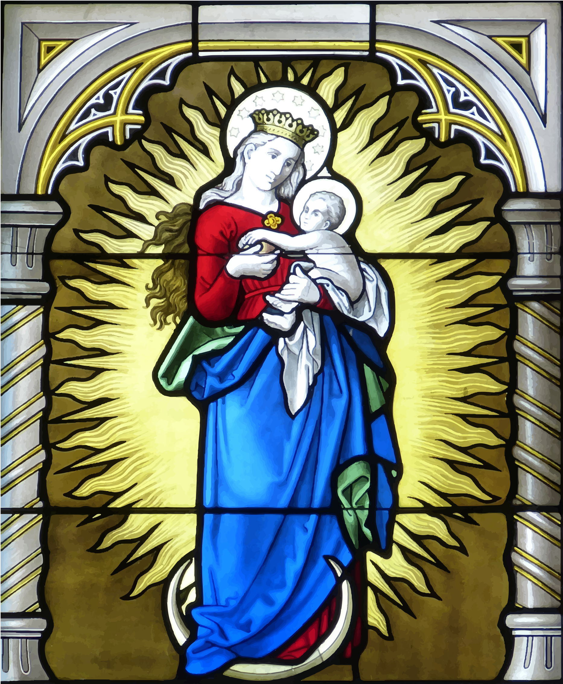 Tags: stained glass, mary and baby jesus