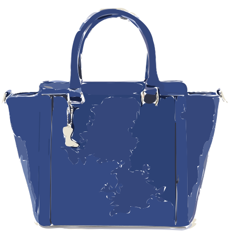 This features a blue leather handbag with silver hardware. It is a large, rectangular-shaped bag that appears to be made of high-quality materials. The bag has one handle and two straps, making it easy to carry or hold onto. The color of the bag is predominantly blue, but there are some areas where the leather shows through, adding depth and texture to the overall appearance.
