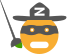 This features a cartoon character wearing a black mask and hat, with the letter Z on its face. This character is holding a fishing pole in one hand and a golf club in the other. The fishing pole has a green tip at the end of it. The cartoon character appears to be a mix between a man and an orange, giving it a unique appearance.