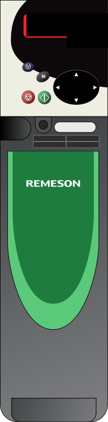 This features a green and white machine with the word "Remezon" written on it. This device appears to be an arcade game, as indicated by its size and design. It is placed in front of a wall that has buttons on it, suggesting that this machine may require input from players or users. The combination of the green and white color scheme with the word "Remezon" gives the impression that this device might be related to a specific brand or company.