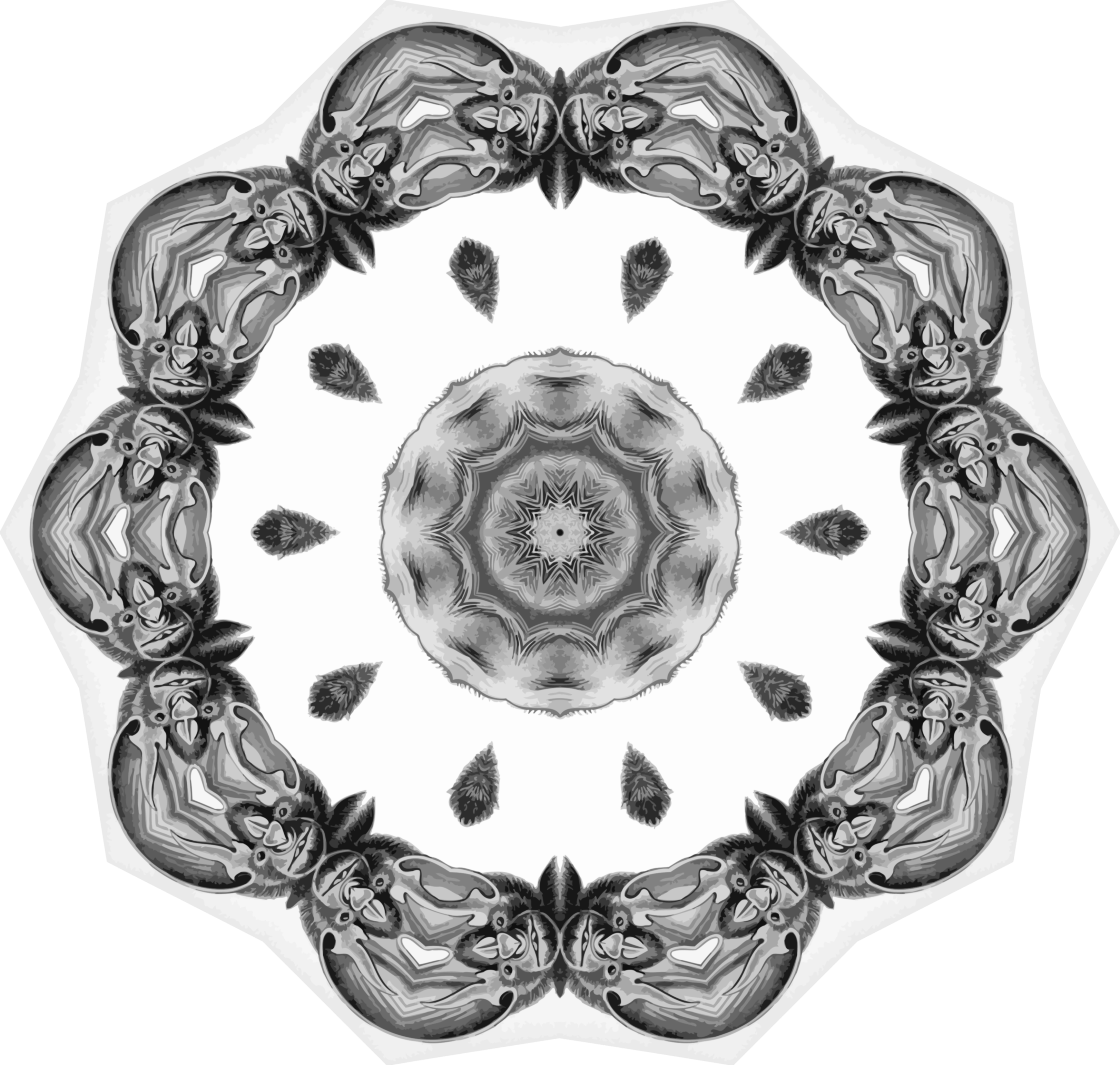 This features a circular design with an intricate pattern, likely inspired by Ernst Haeckel's drawing of bats. The design is created using wedges that are rotated around a central point to form the circle. This unique pattern gives the impression of a swirling or spiraling effect. The overall composition of the image showcases the artistic and creative aspect of this design, making it an interesting visual piece.