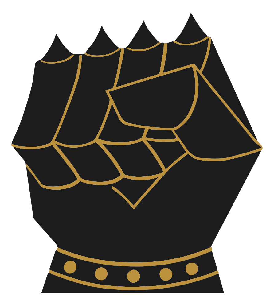 This features a black and gold fist, which is an iconic symbol of strength and solidarity. The fist is prominently displayed in the center of the image, with its bold design making it stand out against the background. The combination of black and gold colors adds depth and visual interest to the overall composition of the image. This powerful symbol can be used in various contexts, such as sports teams or political movements, to represent unity and determination.