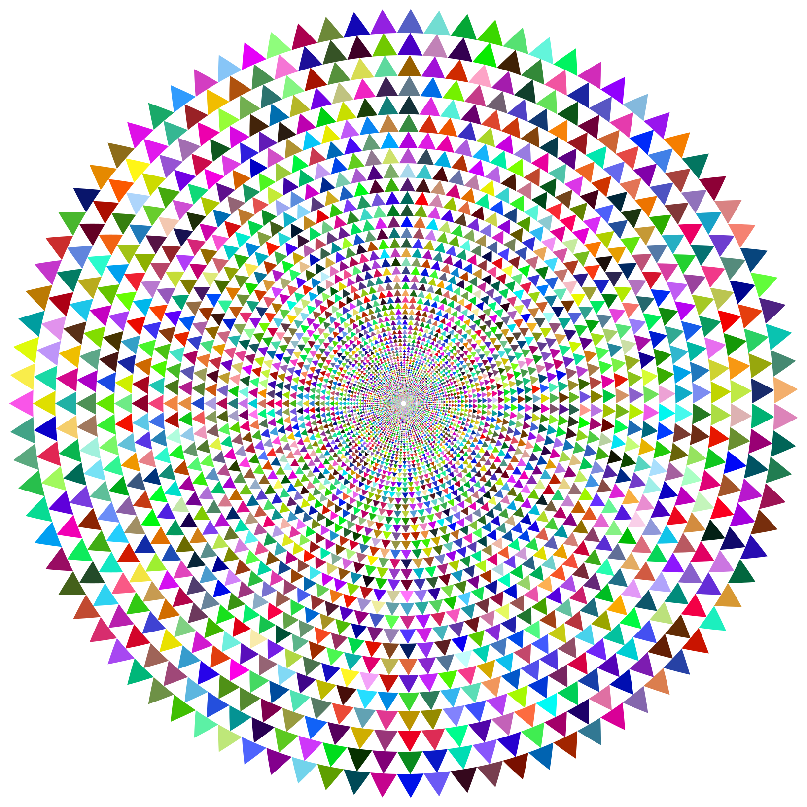 This features a large, colorful circle made up of many small triangles. Each triangle is a different color, creating an eye-catching and vibrant pattern. The circle appears to be the centerpiece of the image, with its intricate design drawing attention. The various colors used in the triangles create a sense of depth and complexity within the overall composition. This artistic piece could potentially serve as a decorative element or an interesting visual focal point for any space it occupies.