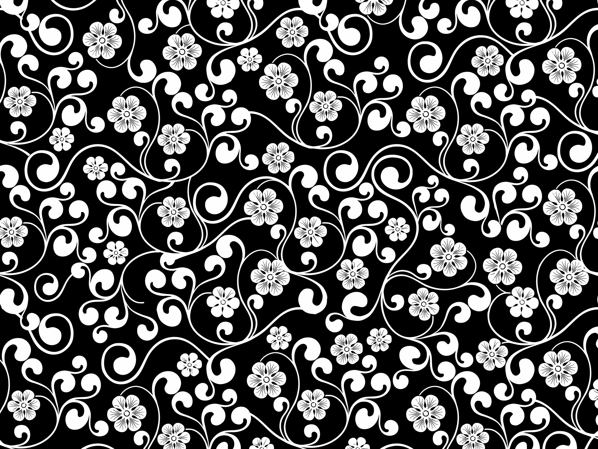 This features a black and white floral pattern with curly branches. The flowers are white in color, creating an elegant and sophisticated appearance. The design is intricate and detailed, making it suitable for various applications such as wallpaper or fabric patterns. The contrast between the black background and the white flowers adds depth to the overall composition of the image, giving it a visually appealing quality.