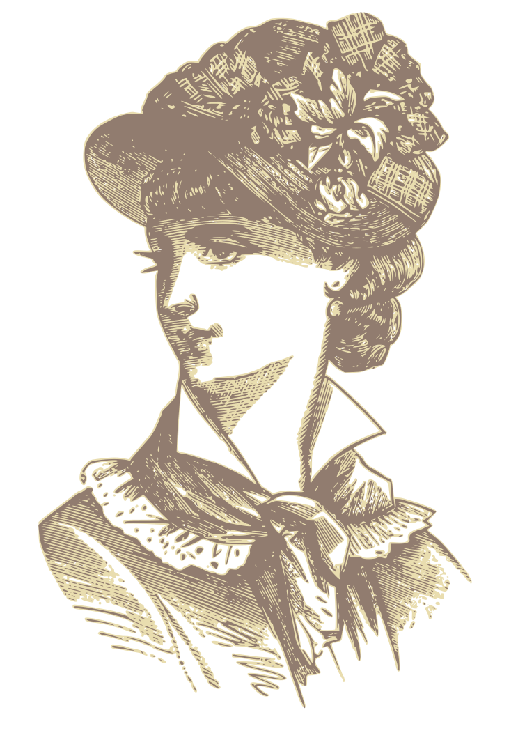 This features a beautifully drawn portrait of an elegant woman. She is wearing a lace collar and has her hair in a bun, giving her a sophisticated appearance. The drawing captures the intricate details of her clothing and hairstyle, making it a visually appealing piece of artwork. The woman's expression appears to be contemplative or thoughtful, adding depth to the portrait. Overall, this image showcases an elegant and refined individual with a touch of sophistication.