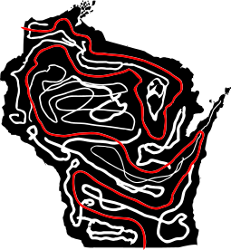 This is a black and white map of the state of Wisconsin, with red lines drawn throughout it. These lines create a maze-like pattern that covers the entirety of the state. The red lines are intertwined in various directions, creating a complex and intricate design. This unique representation of Wisconsin showcases its geographical features while also adding an artistic touch through the use of color.