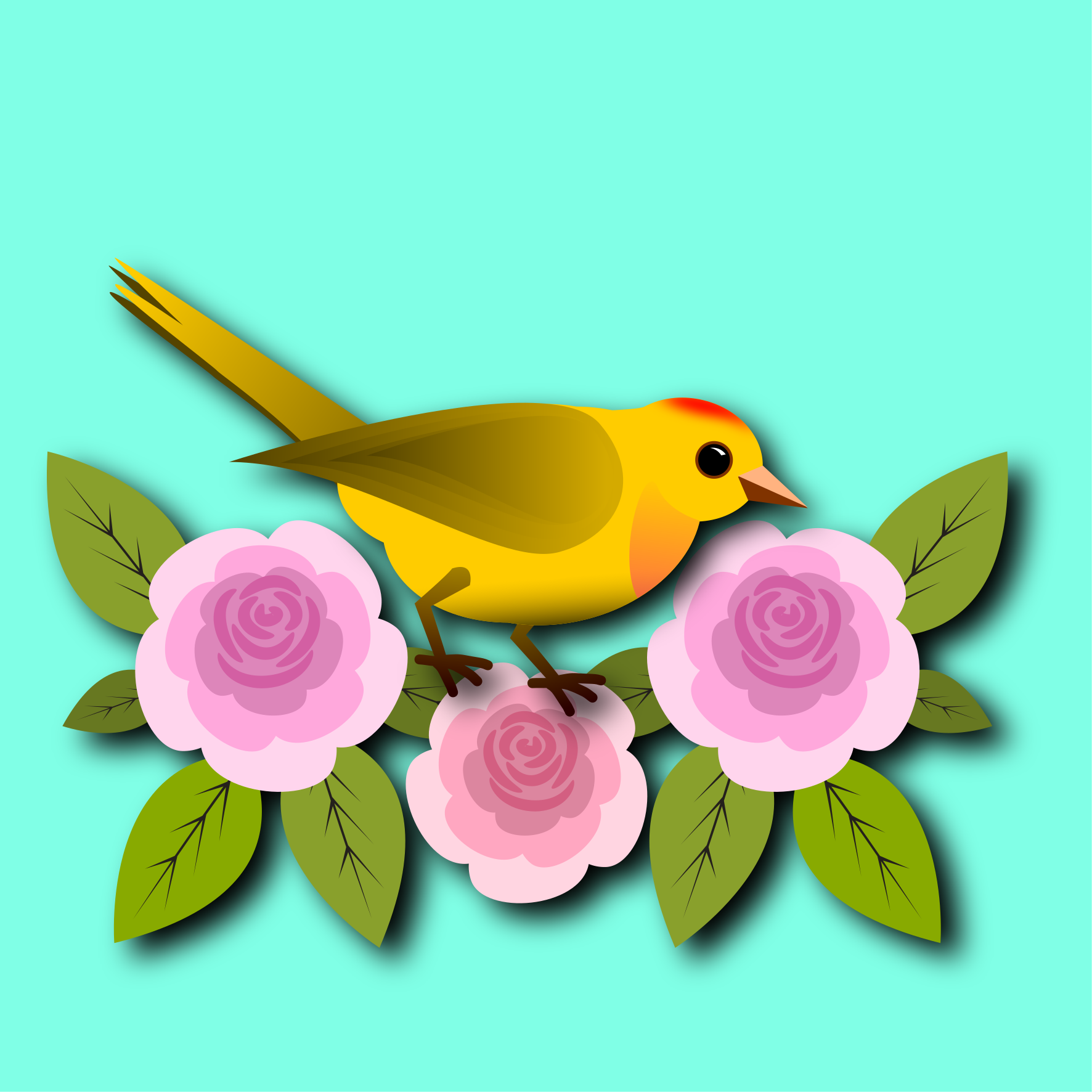 Tags: animal, bird, card, flower, nature, rose, vector, yellow, pink