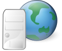 This features a computer server with a white color and black outline. It is placed next to an Earth globe, which also has a black outline. The server appears to be the main focus of the image, while the Earth globe serves as a background element. This combination of elements suggests that the image might be related to technology or computing, possibly emphasizing the interconnectedness between digital systems and our planetary home.