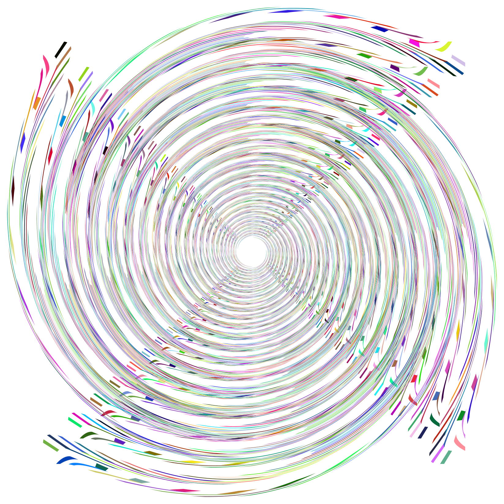 This features a large, colorful circle with many different colored lines swirling around it. These lines are arranged in such a way that they appear to be moving towards the center of the circle, creating an eye-catching and dynamic visual effect. The colors used for these lines are prismatic, which adds to the overall vibrancy and appeal of the image. The background is white, providing a clean and uncluttered space for the swirling lines to stand out prominently.