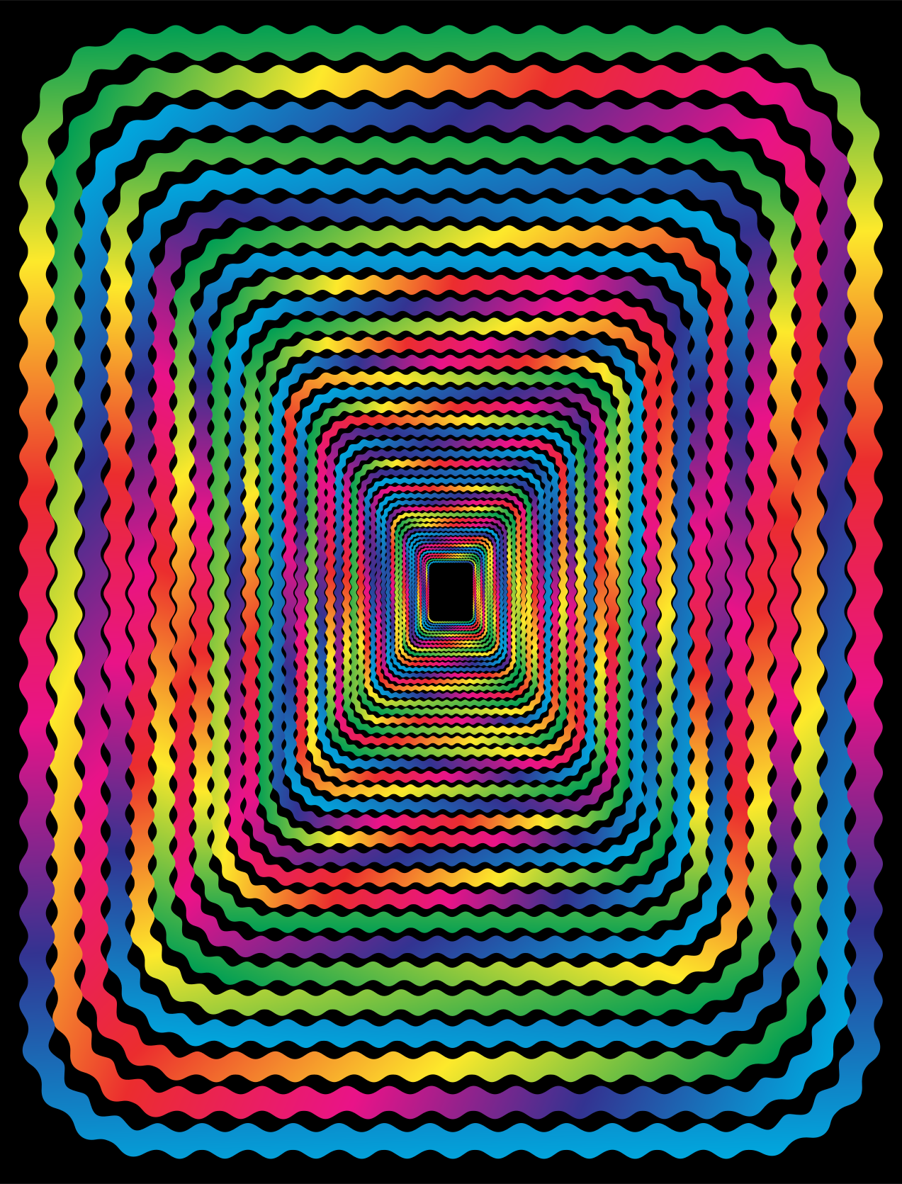 This features a tunnel that is brightly colored and has a rainbow pattern. It appears to be an artistic representation of a tunnel, with the walls being made up of different colors such as red, green, blue, yellow, pink, orange, and purple. The tunnel seems to have no end in sight, giving it a sense of depth and intrigue. The vibrant colors create a visually striking scene that captures the viewer's attention.