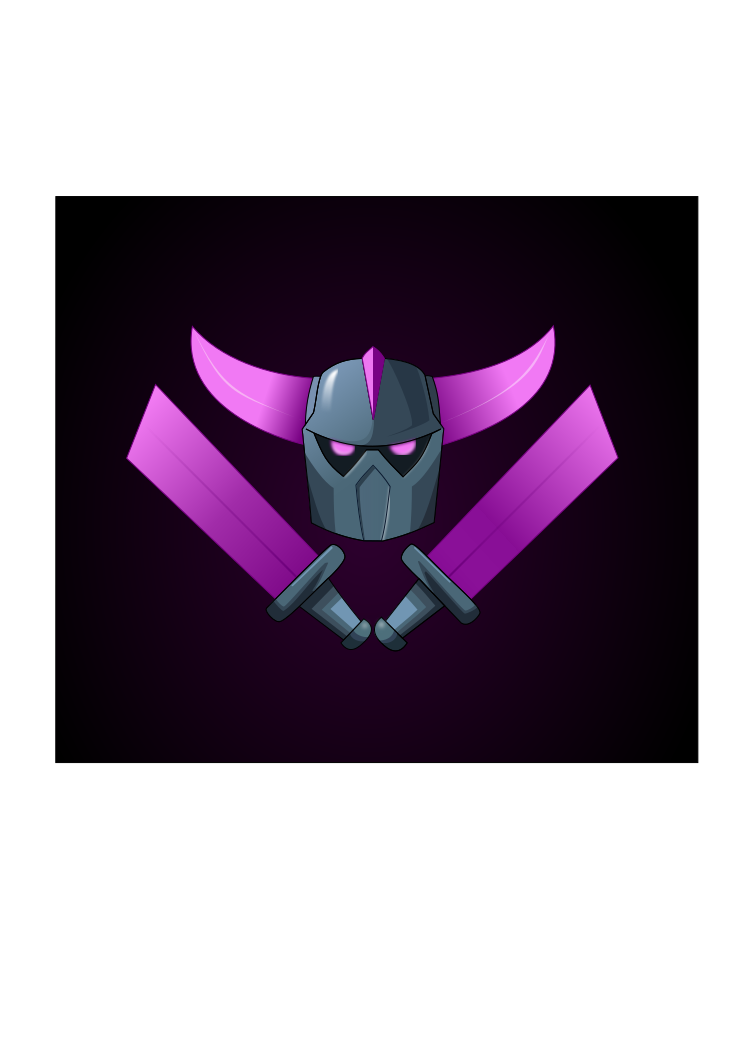 This features a purple and black logo of a knight in armor. The knight is wearing a helmet, which has a purple visor and blue stripes on the sides. The design gives off an intense and powerful vibe. The color scheme of the logo consists of various shades of purple and black, creating a striking visual effect. This unique symbol could be associated with a specific brand or organization, representing strength and courage.