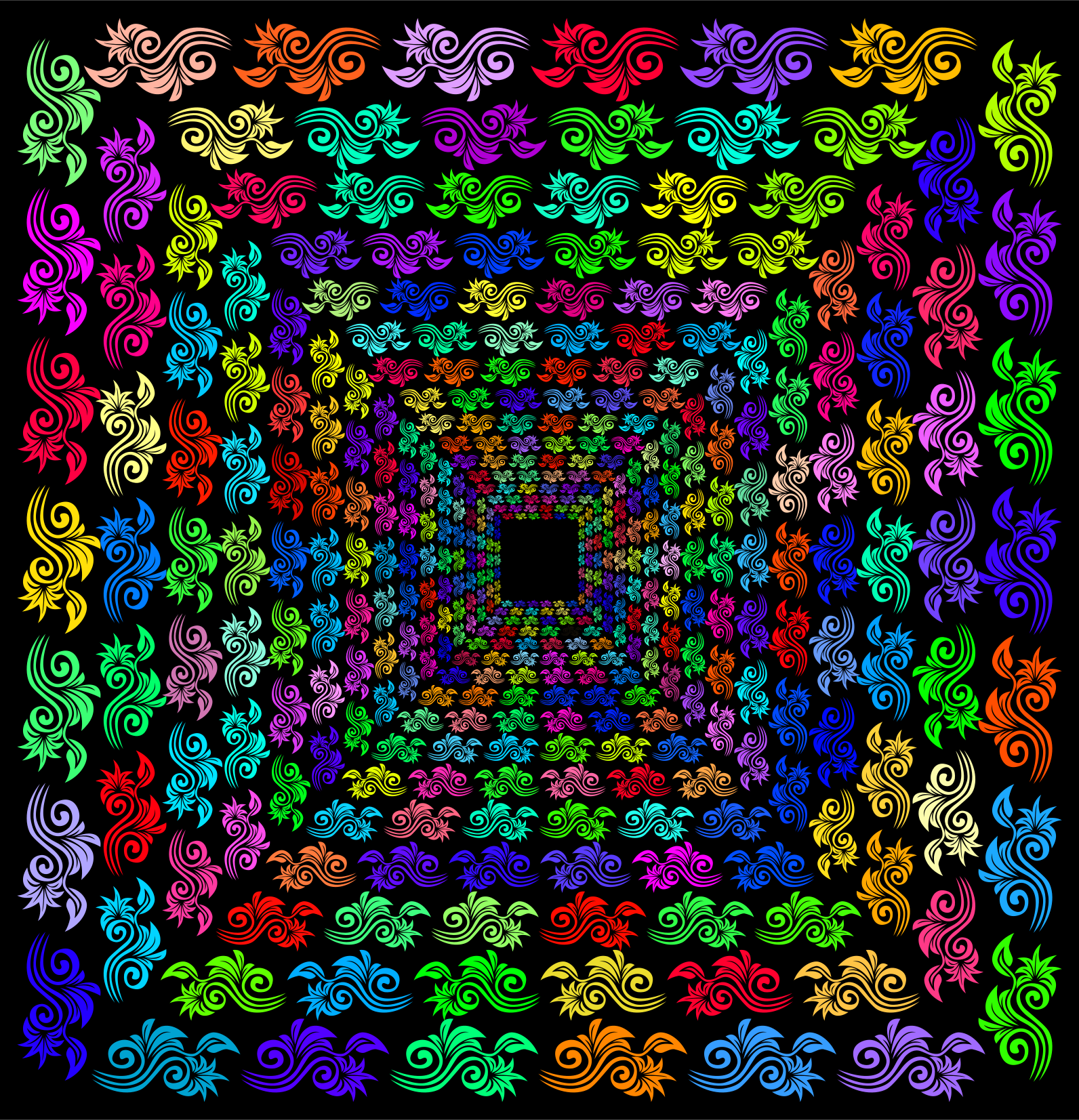 This features a large, colorful design that resembles an optical illusion of being inside a tunnel. The design is made up of many small, intricate floral shapes that are arranged in a circular pattern. These shapes come in various colors and sizes, creating a visually striking and captivating effect. The overall composition of the image gives off a sense of depth and complexity, making it an interesting and engaging piece of artwork.