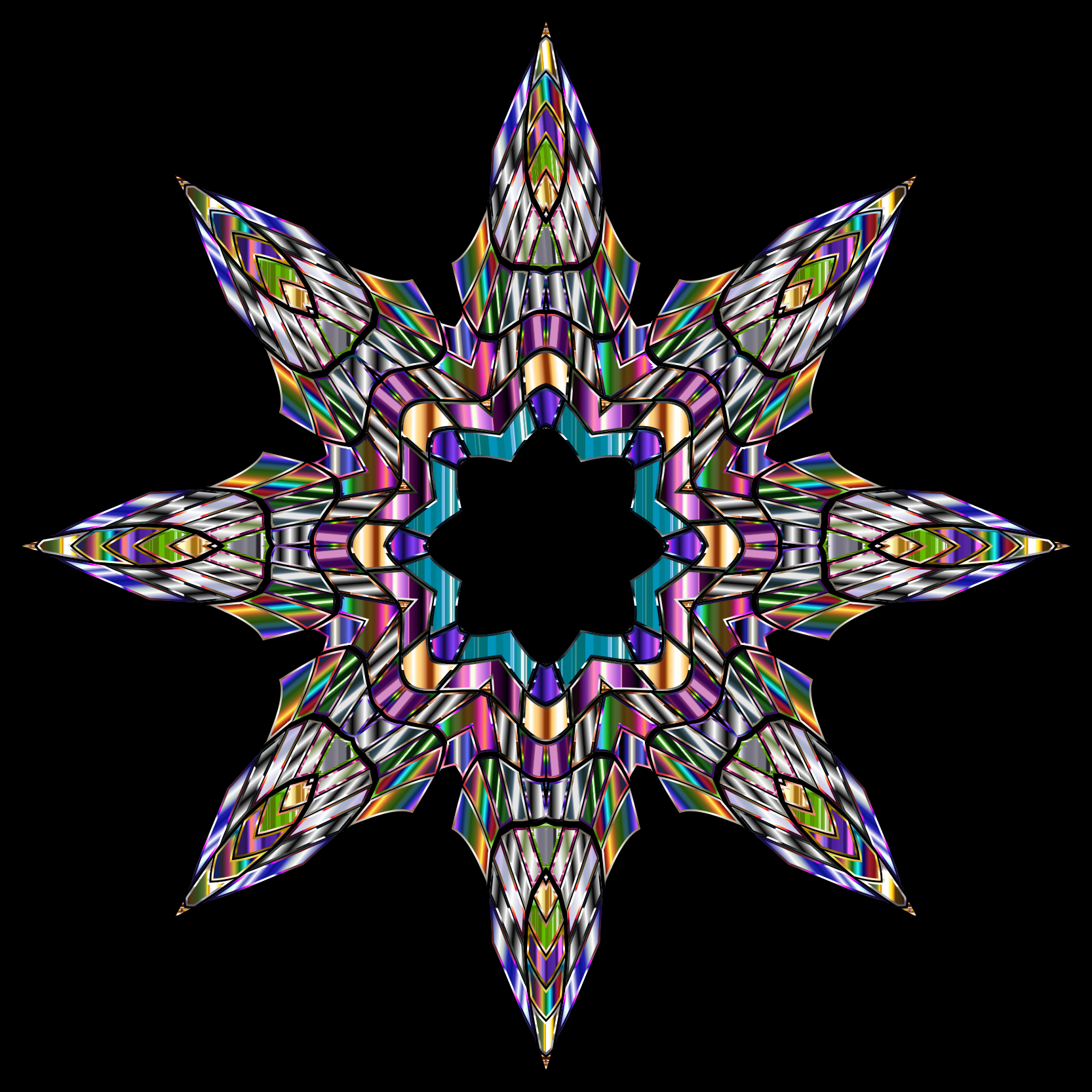 Tags: abstract, art, chromatic, colorful, decorative, geometric, gold, metallic, ornamental, prismatic, rainbow, shiny, silver, vibrant, vivid, patterned, star colorful