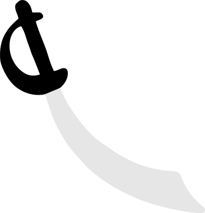 This features a black and white drawing of a sword, with the blade extending from left to right. The handle is located towards the top-left corner of the image, while the rest of the sword's body extends downwards. The overall appearance of the sword gives it an old or vintage look, possibly reminiscent of pirate swords.