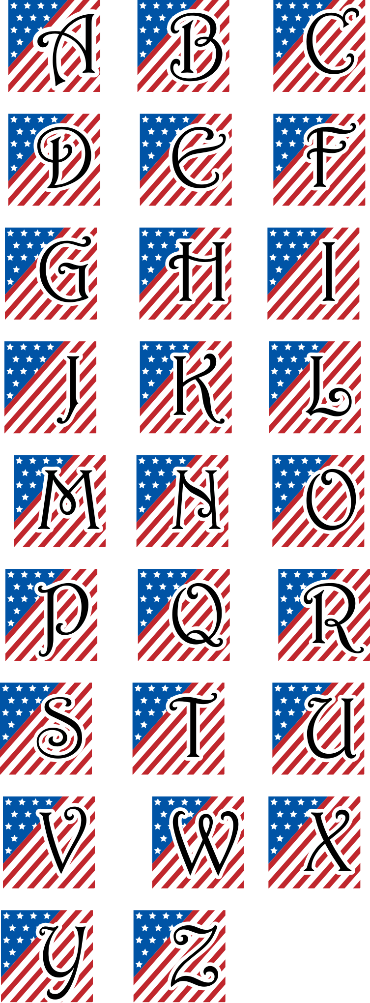 This is a completely free image American Flag Alphabet that you can download, post, and use for any purpose.