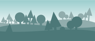 This is a black and white illustration of a forest landscape with various shaped trees. The trees are all shades of green and gray, creating a visually appealing contrast against the light blue sky. The scene appears to be set on a hillside, giving it an expansive feel. There are several pine trees scattered throughout the image, adding depth and variety to the landscape. Overall, this illustration captures the beauty of nature in its simplest form.