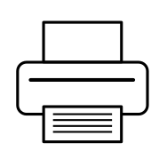 This features a black and white icon of an old-fashioned printer. It is a simple, minimalist representation of the device, with no additional details or colors. The printer appears to be a classic model, possibly reminiscent of the early days of printing technology. This icon could represent the history of printing or evoke nostalgia for those who have used such devices in the past.