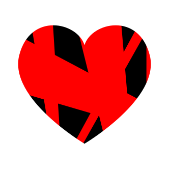 This features a red heart with black and white stripes, giving it an abstract appearance. The heart is the central focus of the image, occupying most of the frame. The combination of red and black colors creates a striking contrast that draws attention to the heart shape. This unique design could be used as a symbol or decoration in various contexts, such as artwork, fashion, or even as a logo for a brand or organization.