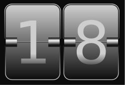 This features a close-up of a flip clock with the numbers 18 displayed on it. The clock is black and white, giving it an old-fashioned appearance. The clock's face is divided into two sections, one for the hours and another for the minutes. The numbers are light grey in color, which contrasts nicely against the dark background of the clock. This image captures a simple yet elegant timepiece that can be easily understood by anyone who sees it.