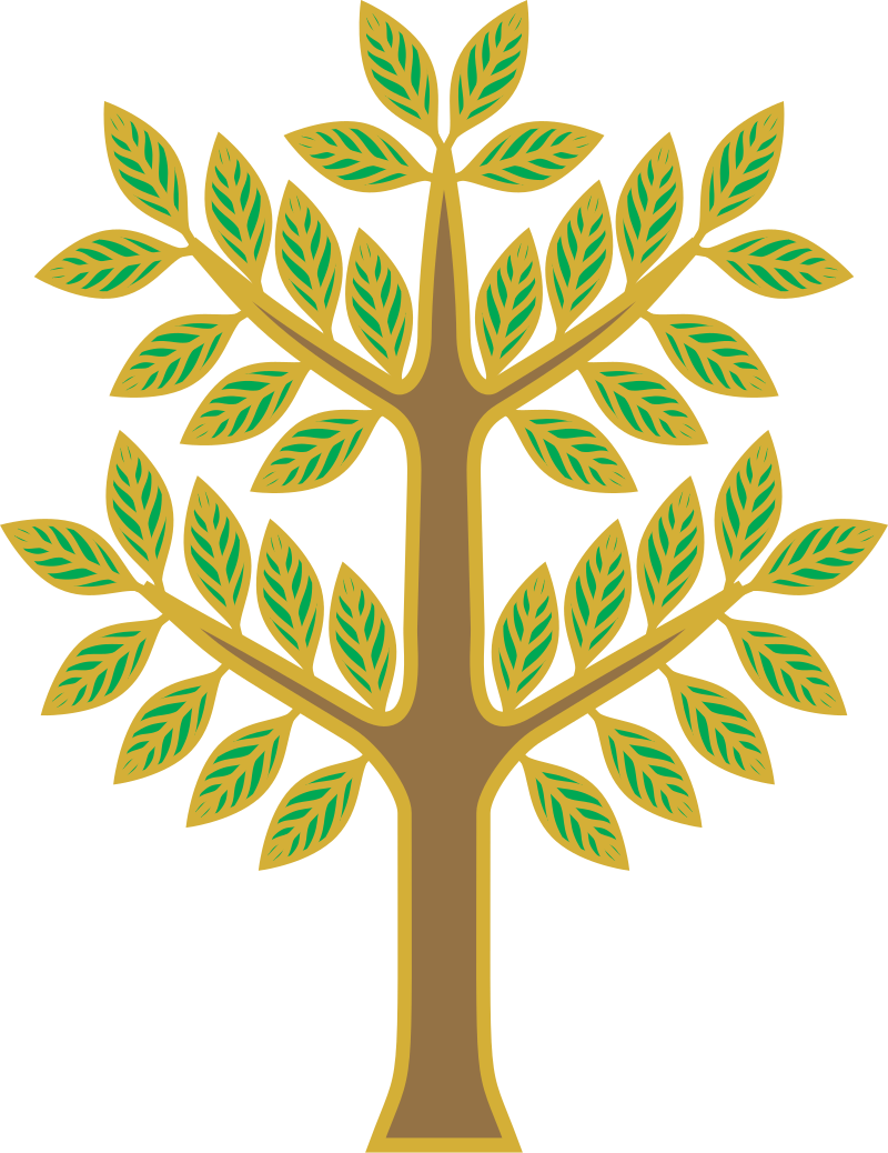 This features a tree with four branches, each adorned with leaves. The tree is depicted in gold and brown colors, giving it an elegant appearance. The leaves are spread out across the branches, creating a sense of depth and dimension to the tree's structure. This artistic representation of a tree can be appreciated for its intricate details and vibrant color palette.